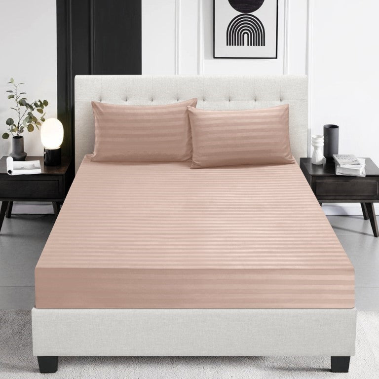 Elastic Edges Breathable Satin Stripe 30 Cm Deep Pocket Fitted Sheet